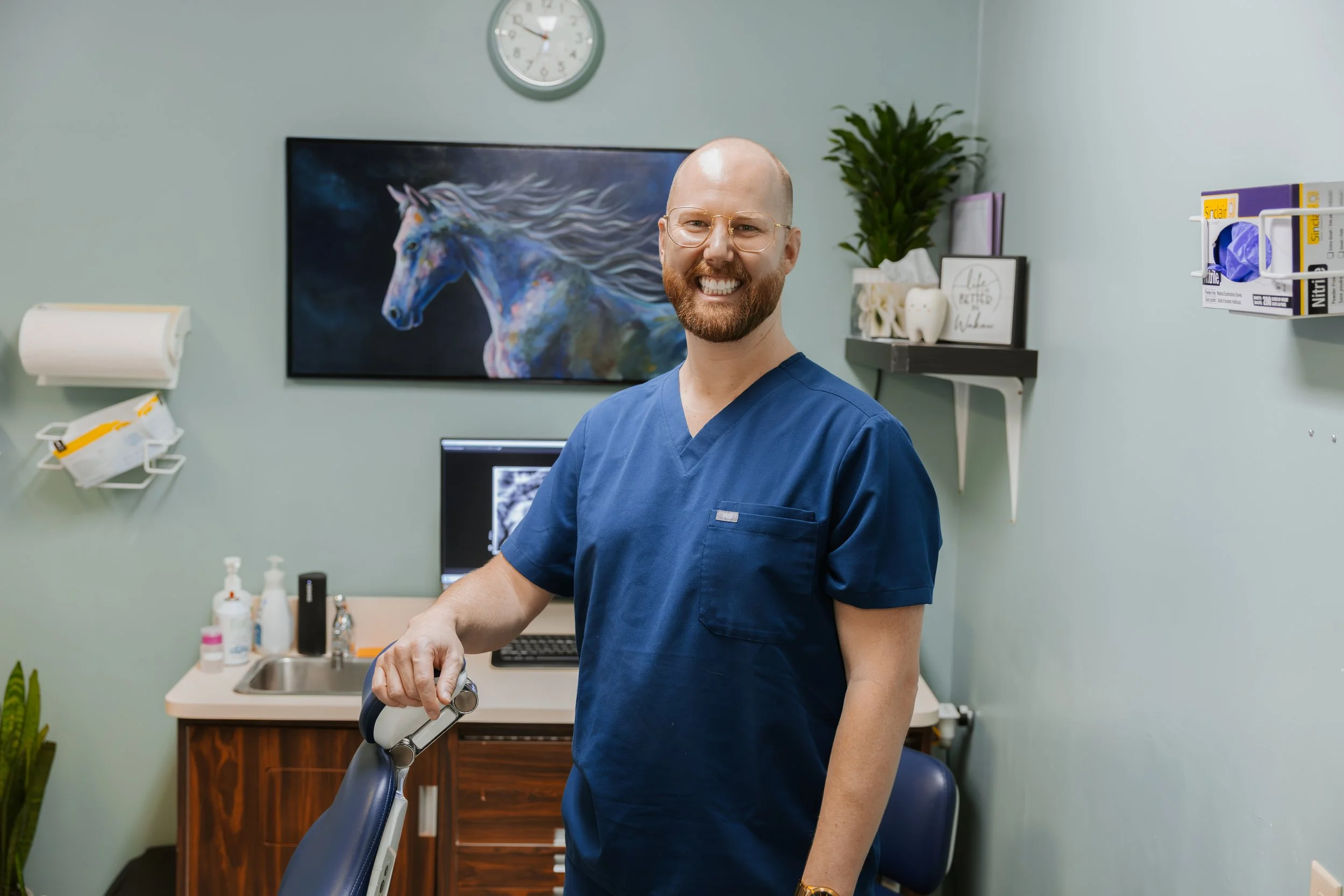 Beyond the dental office, Christopher values every free moment spent with friends and family. Together with his wife, Jenna, they cherish entertaining, traveling, and the delightful company of their dogs, Reba and Penny. Their family joyously expanded in the fall of 2023 with the arrival of their son, Liam.